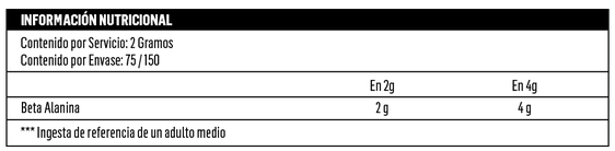 Beta Alanina: Consumir 1 porción (aproximadamente 3 g) con agua 20–30 minutos antes del entrenamiento.