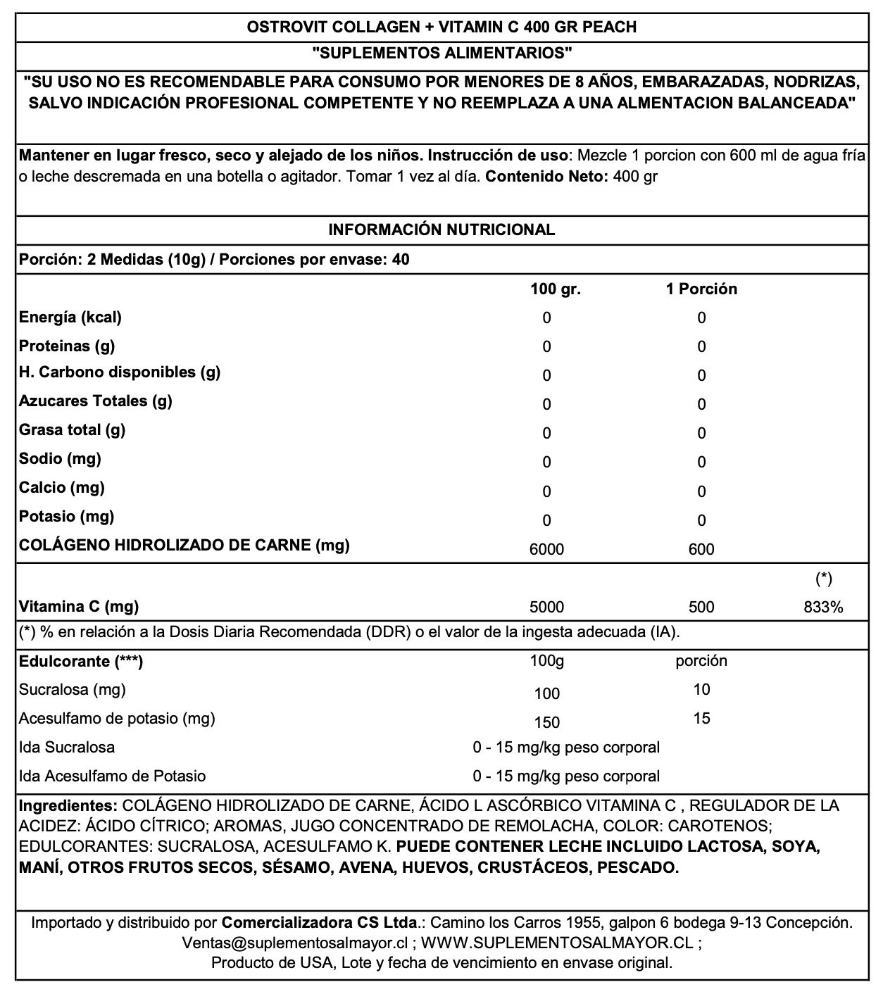 - Contiene hidrolizado de colágeno de origen natural fácilmente digerible