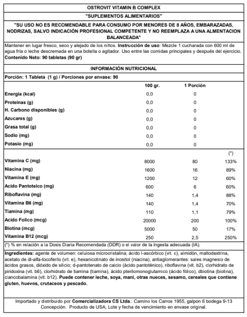 Digestión y Metabolismo: La combinación de vitaminas B, como el ácido pantoténico y la niacina, optimiza el metabolismo de los macronutrientes y ayuda al funcionamiento adecuado de la síntesis de neurotransmisores y hormonas.
